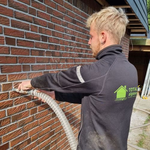 Ved hulmursisolering kontrollerer vi først den eksisterende isolering og indblæser derefter nyt isoleringsmateriale gennem små huller i muren, som efterfølgende lukkes igen. Hos Totalalgeservice udføres efterisolering af certificerede isolatører, som sikrer en korrekt og effektiv løsning. Resultatet er en mere energieffektiv bygning, lavere varmeudgifter og et bedre arbejdsmiljø.